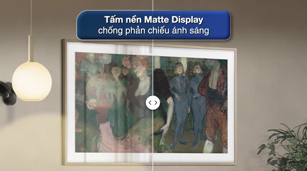 Samsung trang bị công nghệ Matte Display - lớp phủ chống phản sáng độc quyền giúp giảm thiểu hiện tượng chói lóa và phản chiếu ánh sáng. Người xem có thể thưởng thức nội dung rõ ràng, không bị lóa ngay cả trong môi trường sáng mạnh.