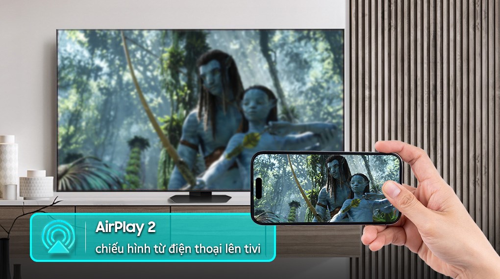 AirPlay 2 giúp chia sẻ nhanh chóng hình ảnh, video từ iPhone hoặc iPad lên màn hình, mang lại sự thuận tiện cho người dùng thiết bị Apple khi thưởng thức nội dung trên không gian lớn.